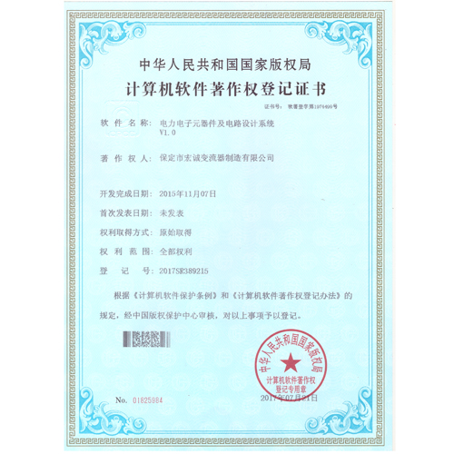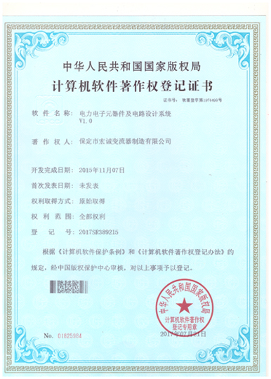 計(jì)算機(jī)軟件注冊(cè)權(quán)登記證書(shū)——電力電子元器件及電路設(shè)計(jì)系統(tǒng)V1.0